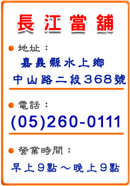 嘉義當鋪,水上當鋪,嘉義支票借款,嘉義借錢,嘉義借貸